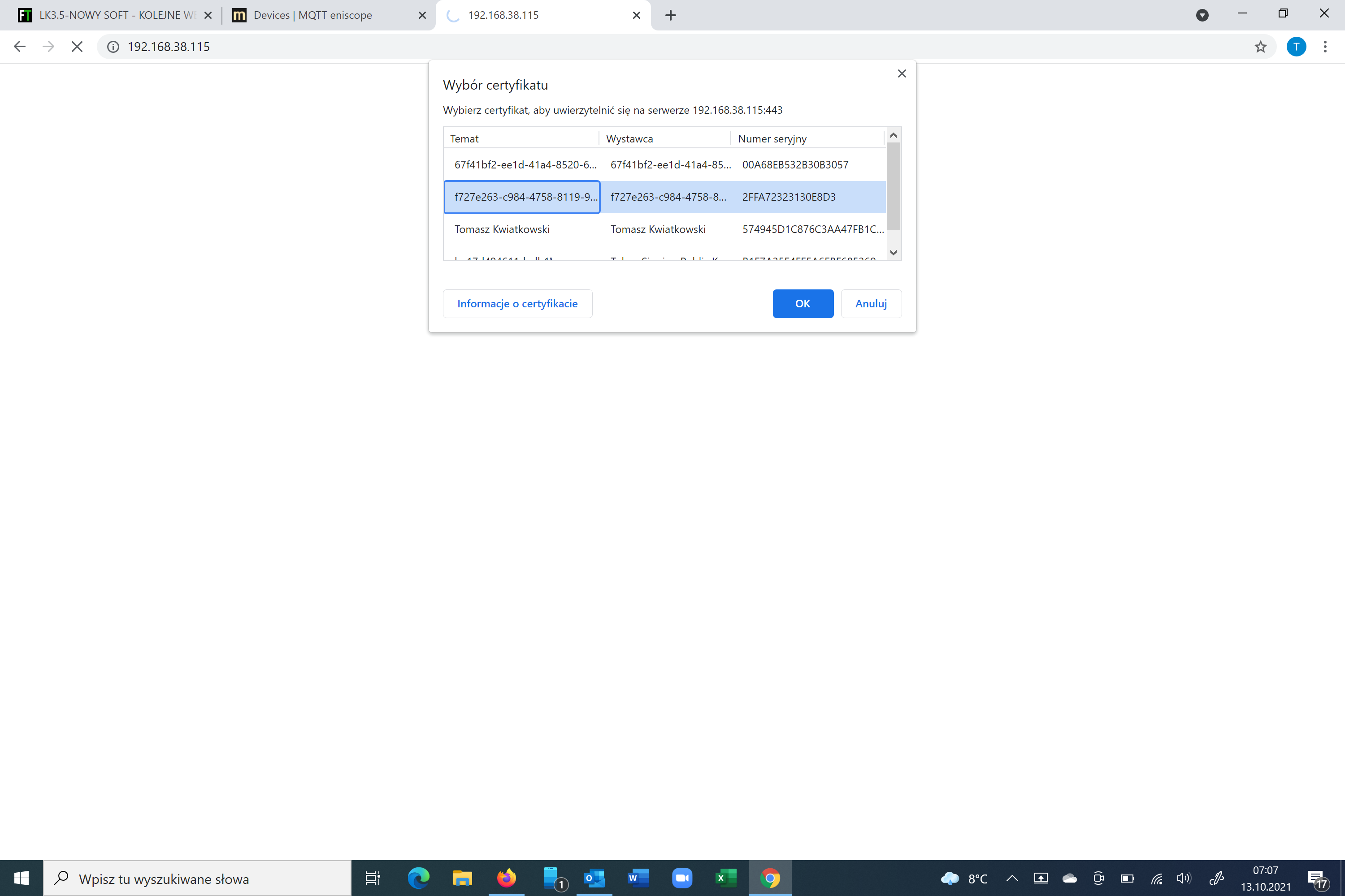 jest problem z certyfikatem do LK3.5 wszystkie przeglądarki wyrzucają że jest nieważny i każda strona jest wyświetlana jako niebezpieczna