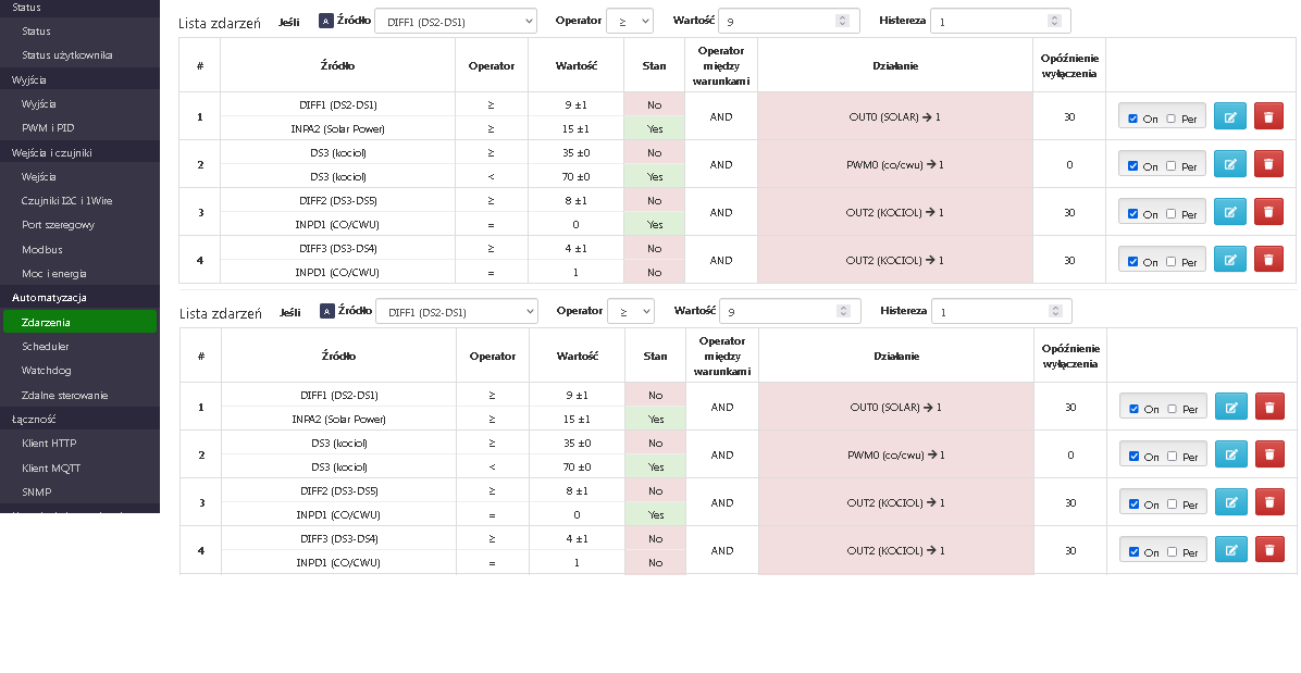 w związku z nadejściem sezonu grzewczego na kilkunastu LK musiałem zmienić ustawienia na zimowe. Opcja zdarzeń na zasadzie 2 lub 3 bloków które otoczone są klamrą warunku była by wreszcie końcem tego corocznego dylematu.