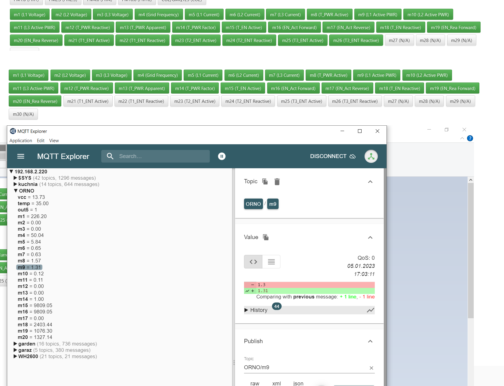 Drugim mankamentem jest działanie zmiennych mqtt: - zmienne mx są widoczne w brokerze tylko do m14 (wyższe nie są publikowane)