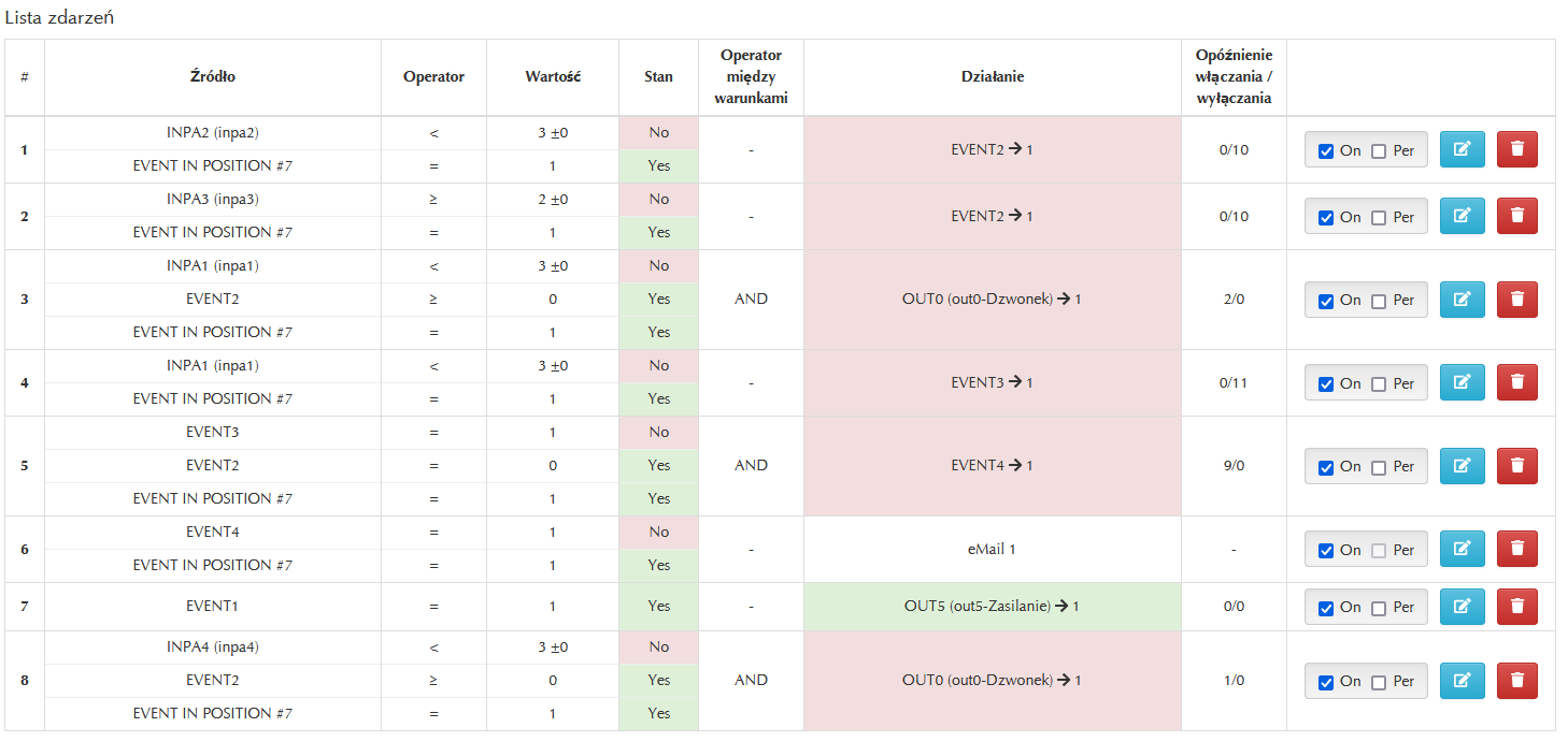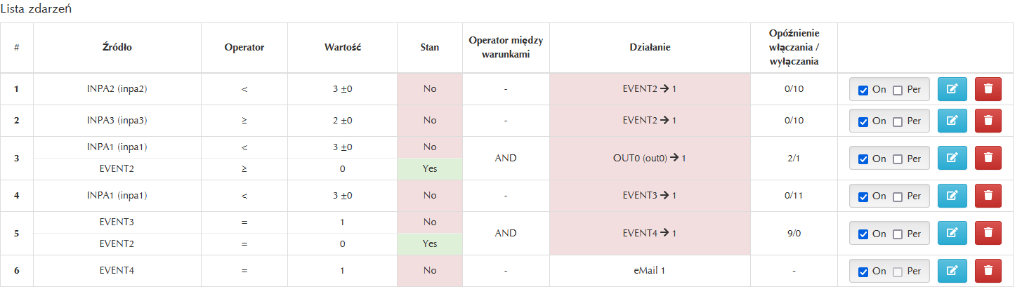 6 - Kontrolka wysyła e-maila przy braku reakcji na zdarzenie 4. Mogło by jej nie być gdyby przy opcji "wyślij e-mail" była dostępna opcja "opóźnienie włączenia"