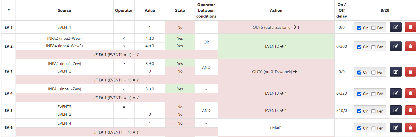 Fajnie by też było gdyby w warunkach można było użyć 3 źródeł albo za pomocą harmonogramu można by było włączać lub wyłączać poszczególne zdarzenia. Chodzi o to że chcę aby pewna zdarzenie działały w określonym przedziale czasowym a nie przez 24h.